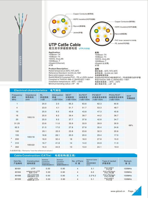 超五类非屏蔽数据电线UTP/非屏蔽